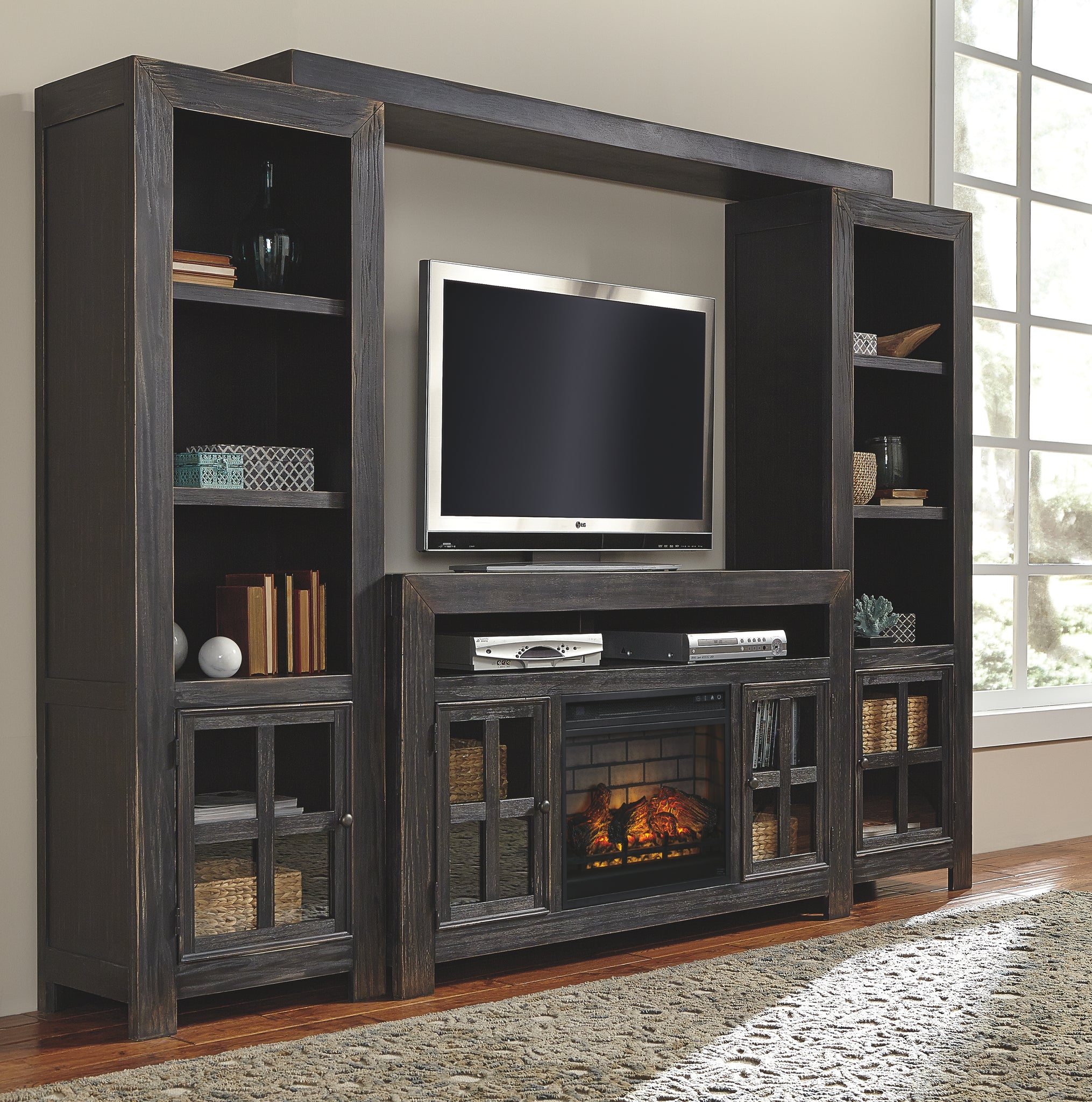 Inspired by the sheer simplicity and weatherworn beauty of primitive furniture this pier brings a relaxed sense of style into your space while elevating the form and function of your entertainment center. Combining open display space with closed cabinet storage it balances your needs beautifully. Cutouts for wire management help keep the look clean and uncluttered.