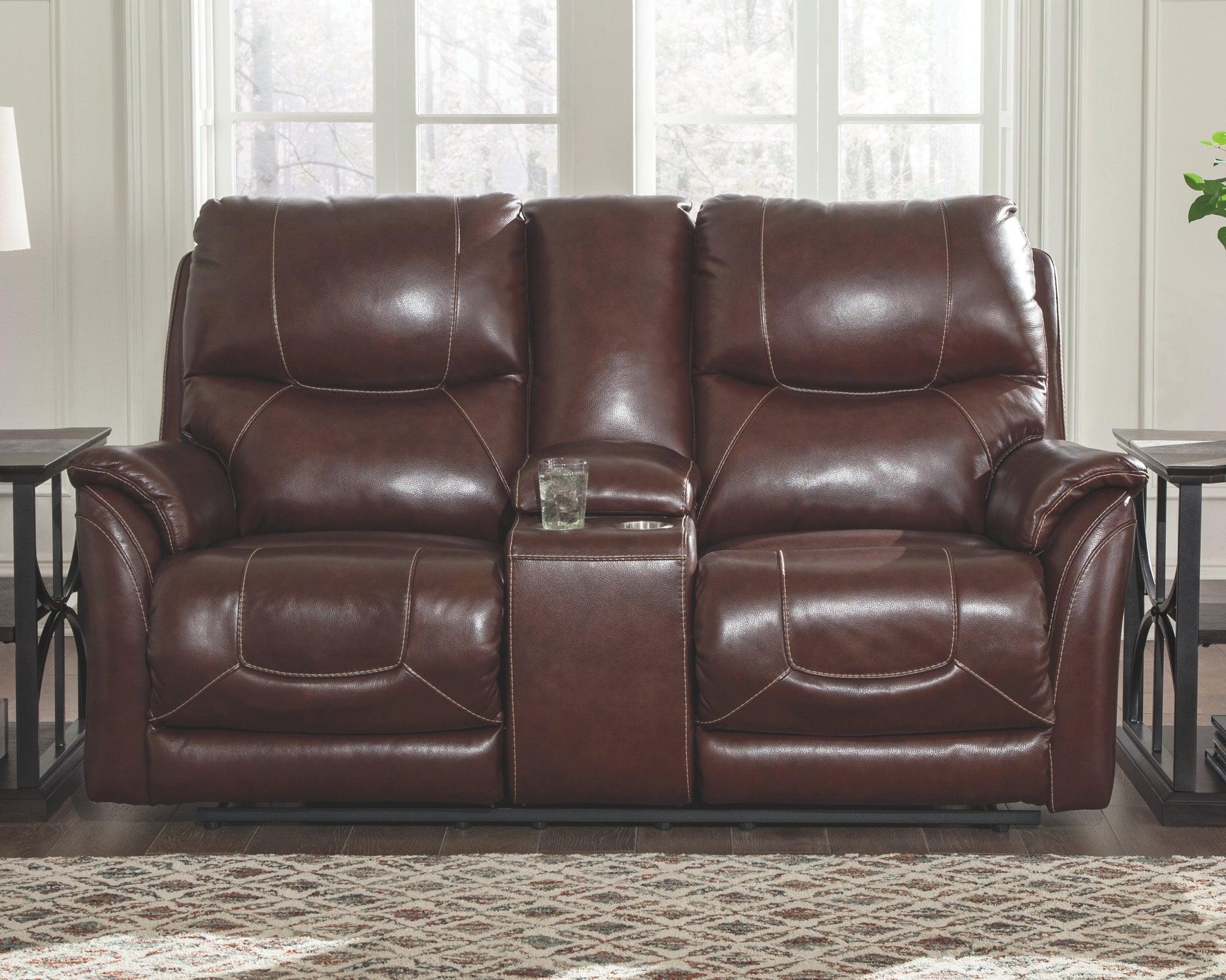 What could be better than the indulgent feel of genuine leather How about fashion-forward looks to match. And a one-touch power control that delivers unsurpassed comfort and support. Rest assured this power reclining loveseat with 43 high back is designed to pamper from head to toe. Sporting a real leather seating area for buttery-soft pleasure this contemporary reclining loveseat with distinctive jumbo stitching takes it up a notch with one-touch power lumbar support and an Easy View power adjustable headrest that lets you fully recline and still have a primo view of the TV. Lets not forget the USB plug-ins that let you recharge while you unwind. Manufacturer Warranty: 365 Days