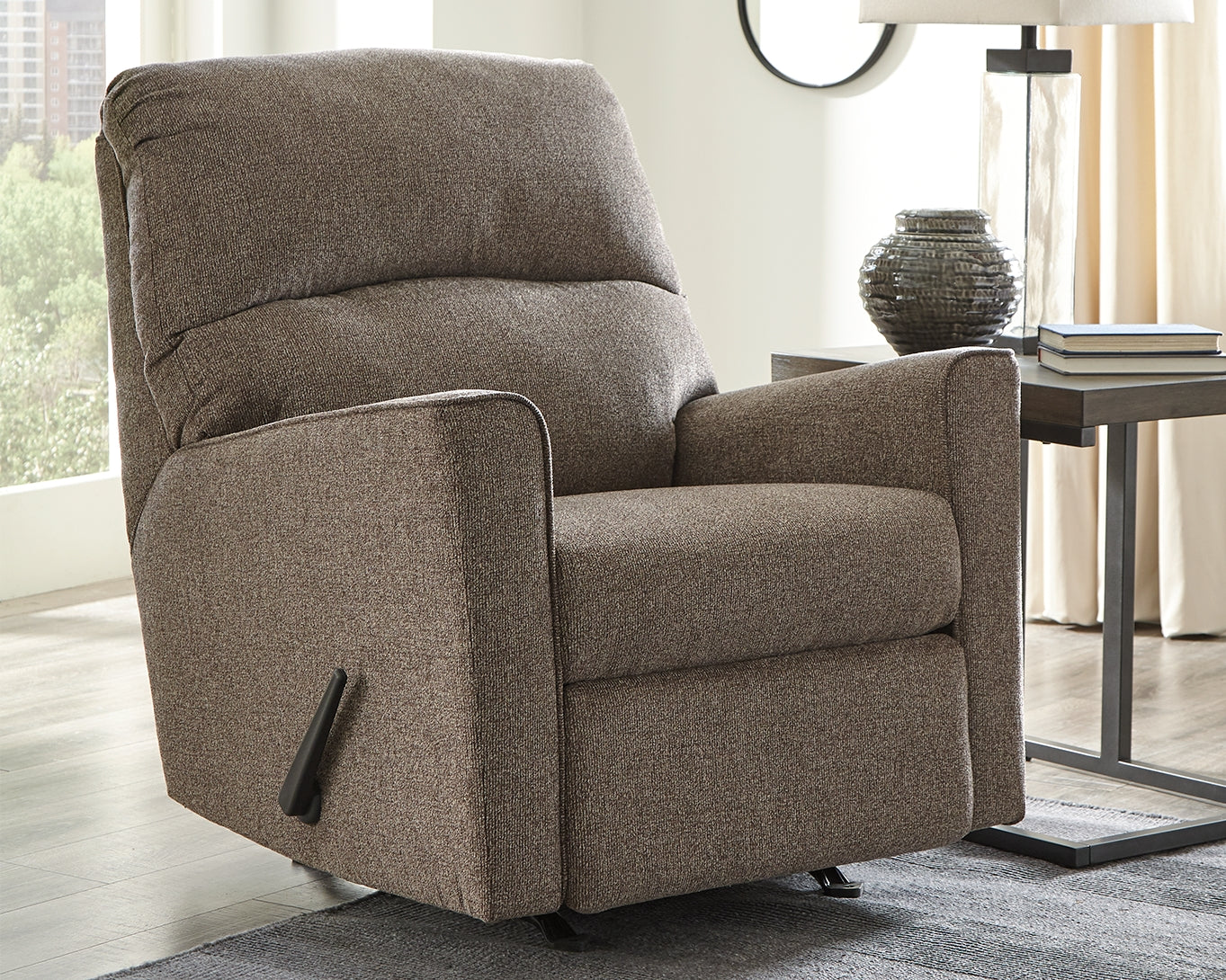 Searching for just the right blend of comfy and contemporary Relax to your hearts content on this posh and plush rocker recliner in charcoal gray. Elements like track arms and chic divided back tufting lend the clean-lined look you love. Manufacturer Warranty: 365 Days