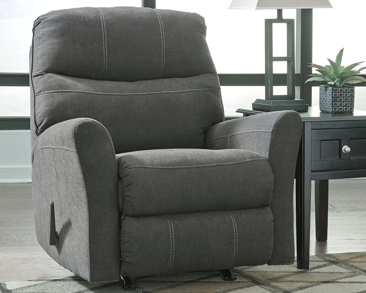 Destination relaxation oasis. Elevate your design aesthetic with this rocker recliner. Plush yet structured cushioning packed with metro modern flairthis recliner is where sophisticated style meets everyday comfort. Recline in infinite positions of soft comfort with one pull. Manufacturer Warranty: 365 Days